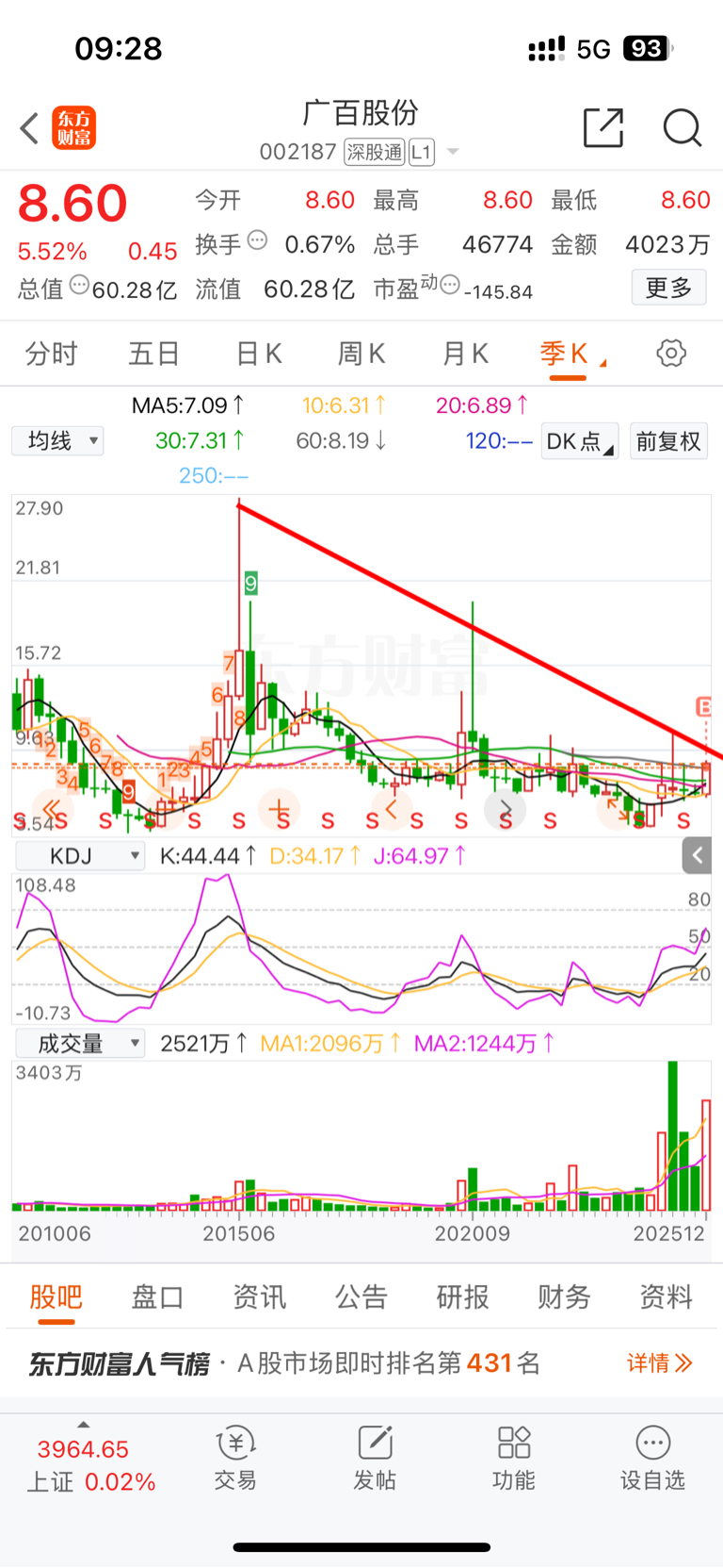 上一次卖飞上海电力,这次广百拿长线,突破趋势压力后就是大行情
