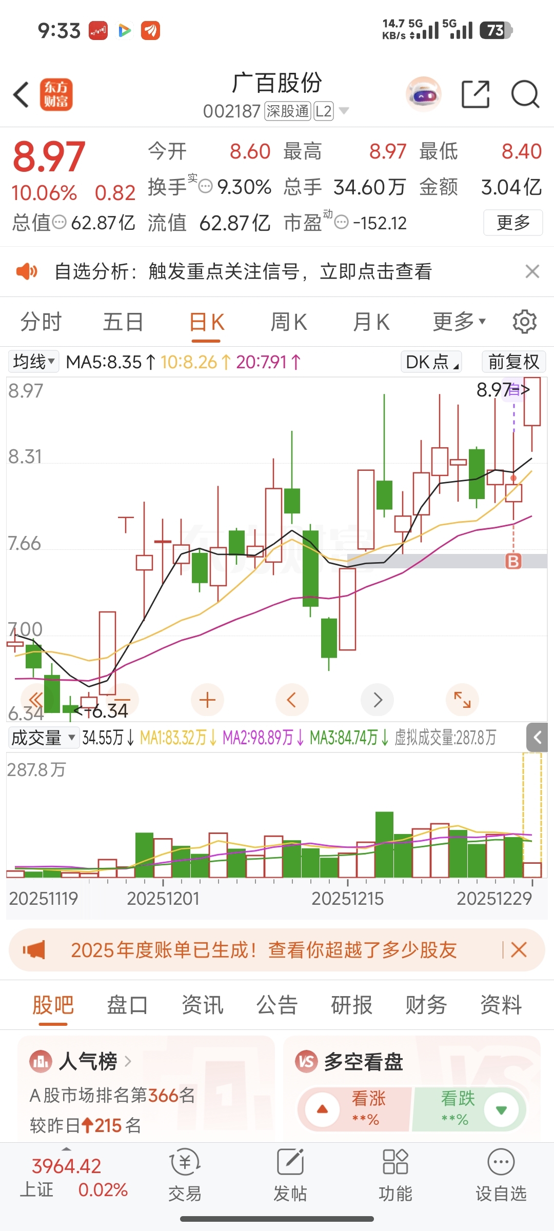 $广百股份(SZ002187)$ 早上砸盘没加仓,可惜了