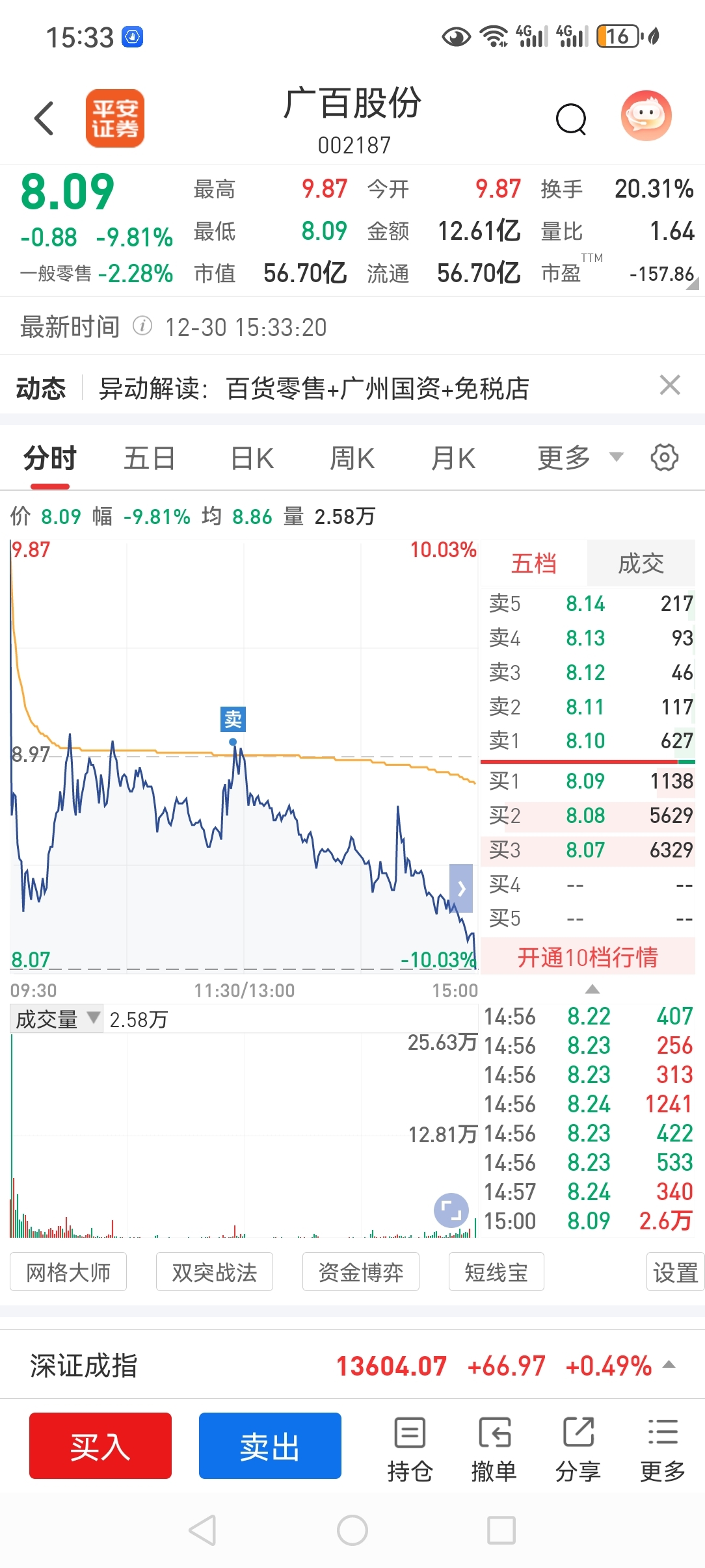 $广百股份(SZ002187)$ 竞价来不及跑,还好利润保住了