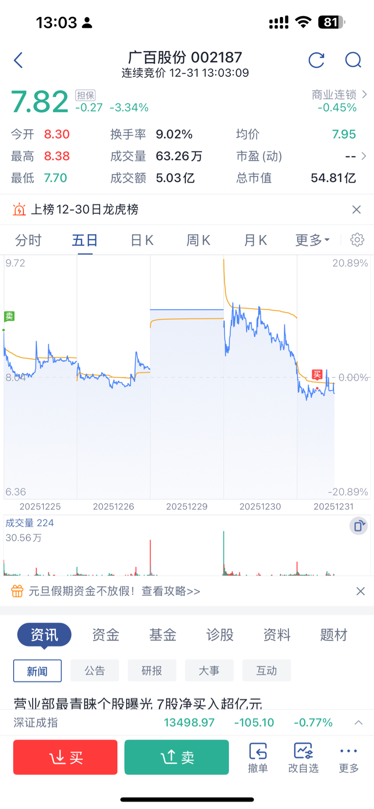$广百股份(SZ002187)$ 大佬在打架,我支持涨,干他