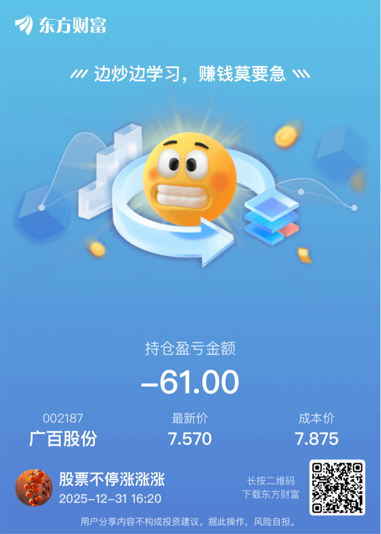 $广百股份(SZ002187)$ 收个全天最低价、,兄弟们消费了多少啊,咱们明年再战,希望2026年兄弟们能股市发财