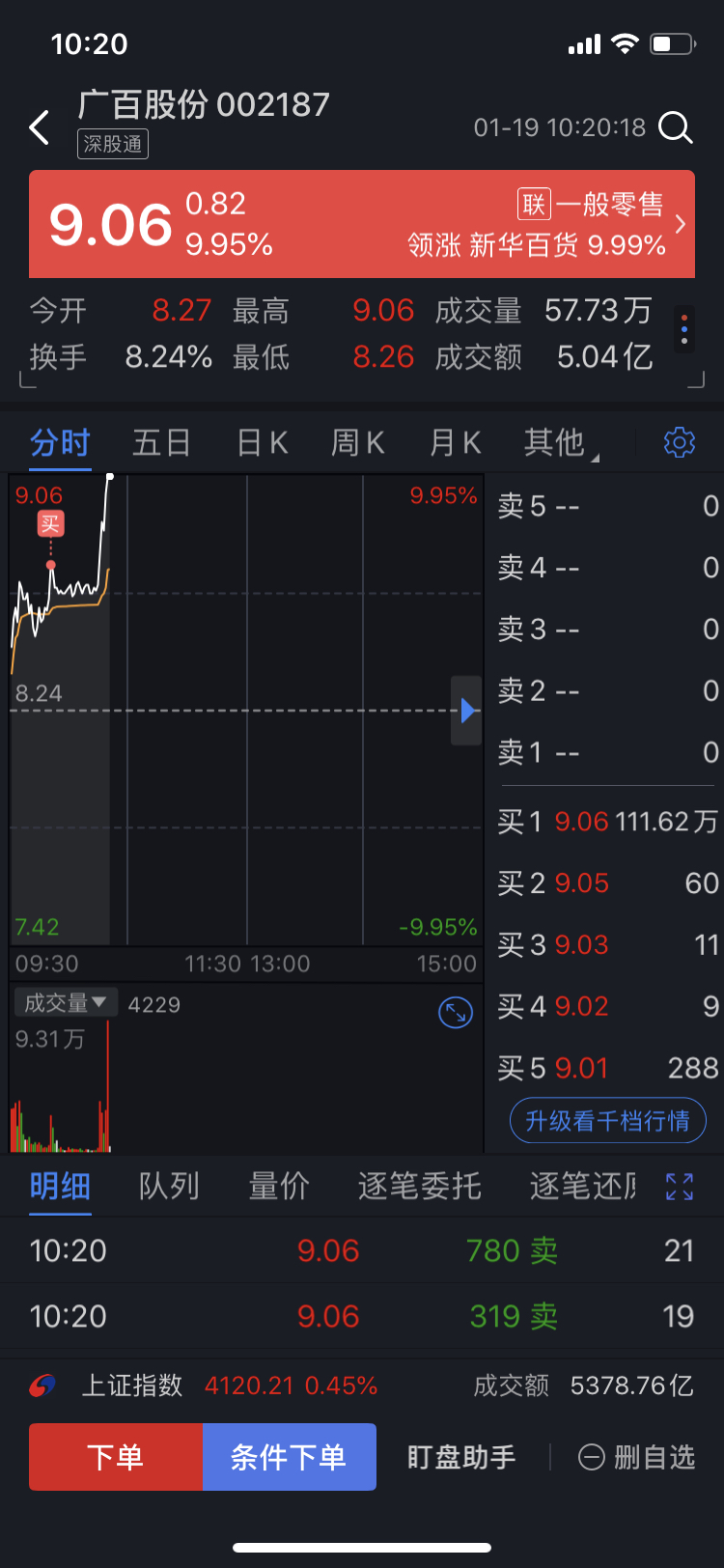 $广百股份(SZ002187)$ 陈小群概念股,有望成妖,今天6个点时加仓买入成功。明天有望走加速突破前高成妖,耐心持股待炒。