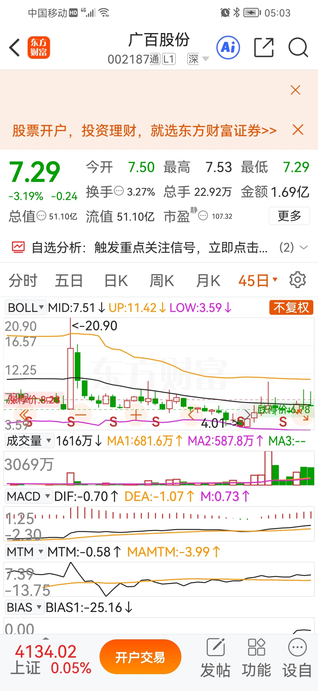 $广百股份(SZ002187)$ #复盘记录# 近期会在45日线级别7.51上下振荡,持有不动。