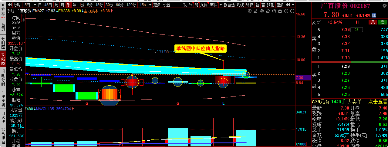看季线炒股没有人能骗你!季线8.01以下越跌,越买!8.01就是九年均价线,买入