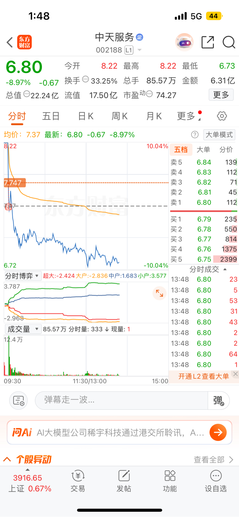 $中天服务(SZ002188)$ 以为抄到了底,结果被抄了家。