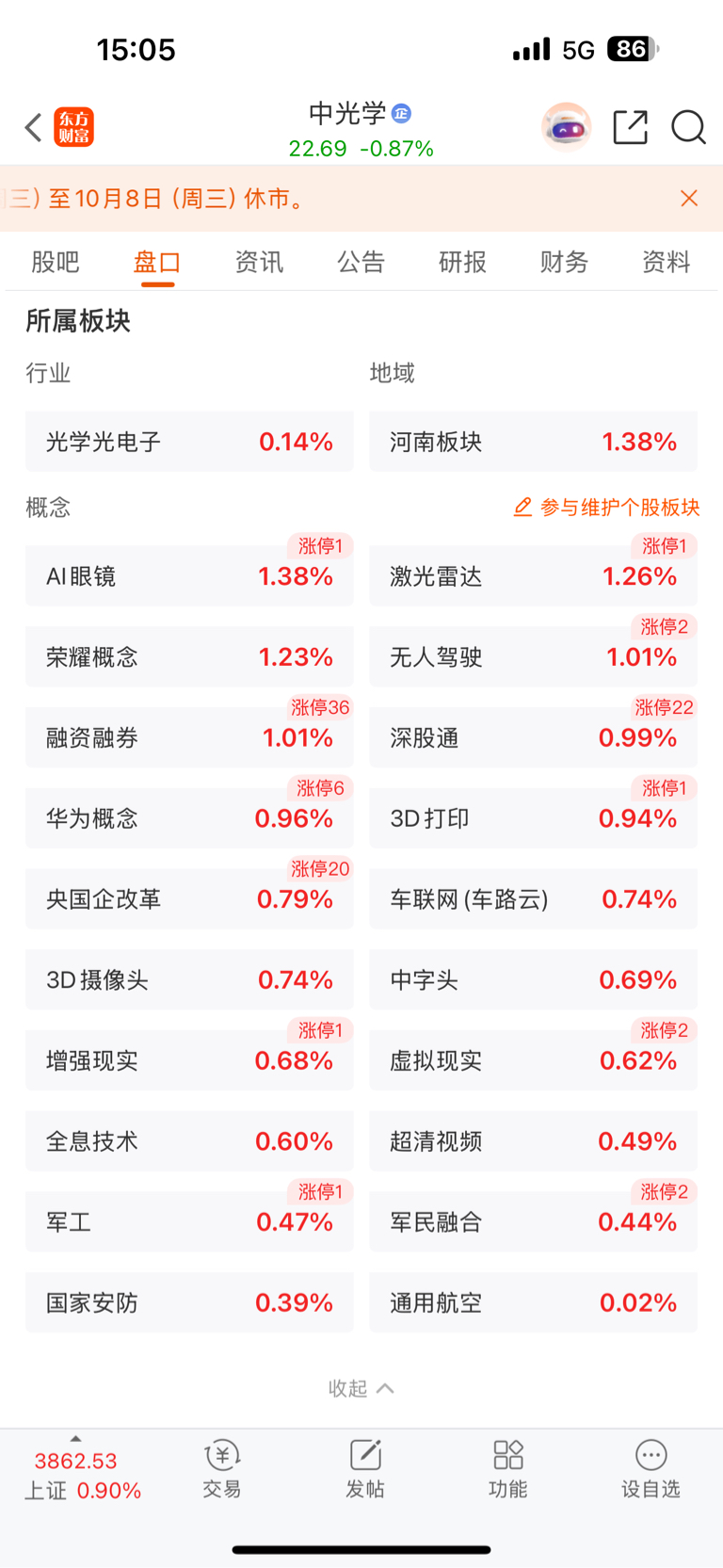 $中光学(SZ002189)$ 真是X东西,一个很都不跟,上午就中字头和国企改革绿,你跟跌,下午拉起来怎么不跟了!