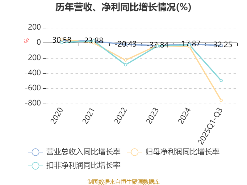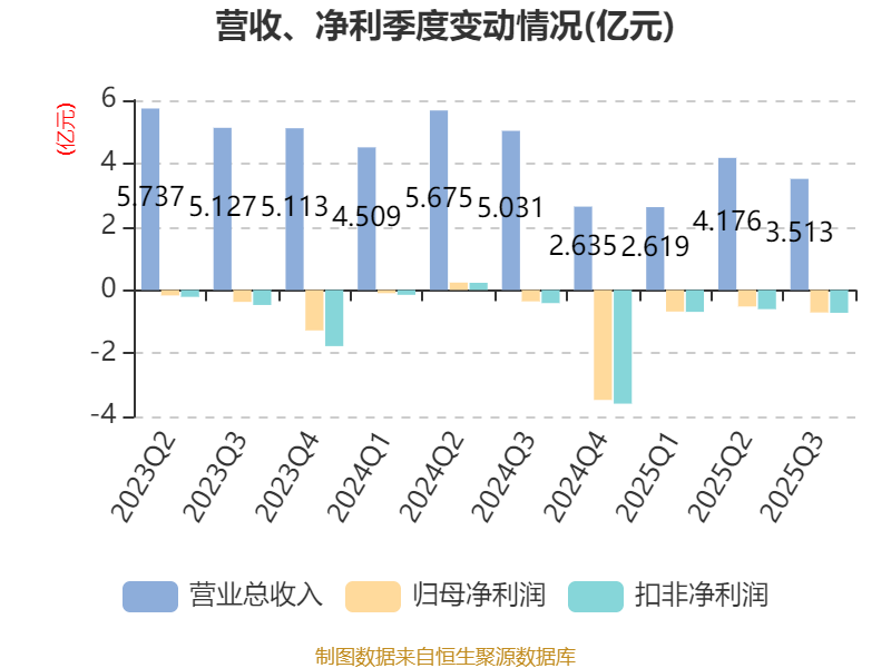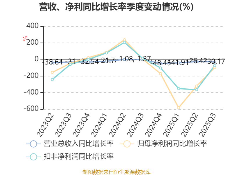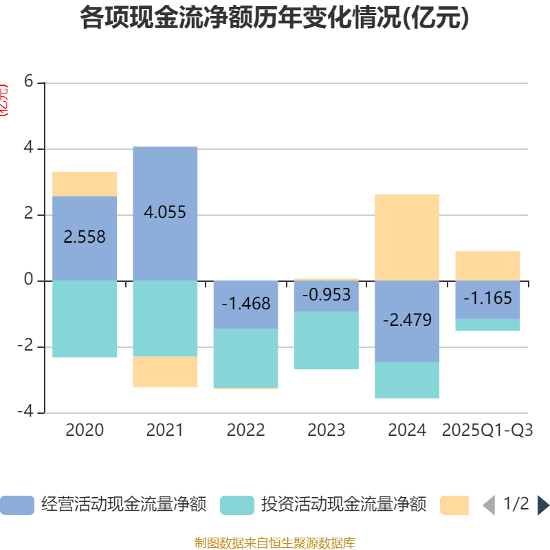2025年前三季度,公司经营活动现金流净额为-1.16亿元,同比增加2.29亿元;筹资活动现金流净额8880.35万元,同比减少2.13亿元;投资活动现金流净额-3624.69万元,上年同期为-6297.2万元。