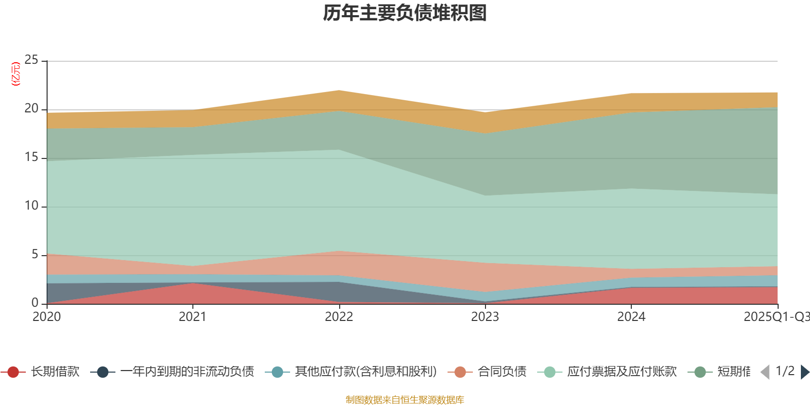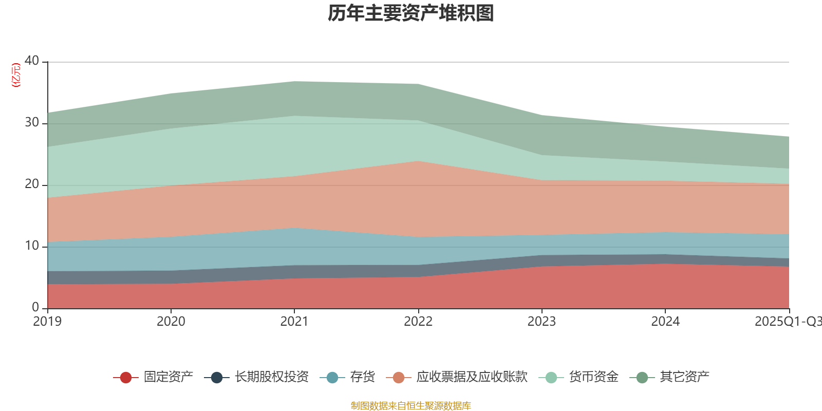 资产重大变化方面,截至2025年三季度末,公司存货较上年末增加9.36%,占公司总资产比重上升1.9个百分点;预付款项较上年末增加137.64%,占公司总资产比重上升1.86个百分点;货币资金较上年末减少20.79%,占公司总资产比重下降1.71个百分点;一年内到期的非流动资产较上年末减少71.07%,占公司总资产比重下降1.57个百分点。
