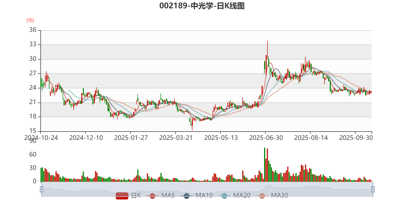 以10月23日收盘价计算,中光学目前市盈率(TTM)约为-11.31倍,市净率(LF)约11.58倍,市销率(TTM)约4.71倍。