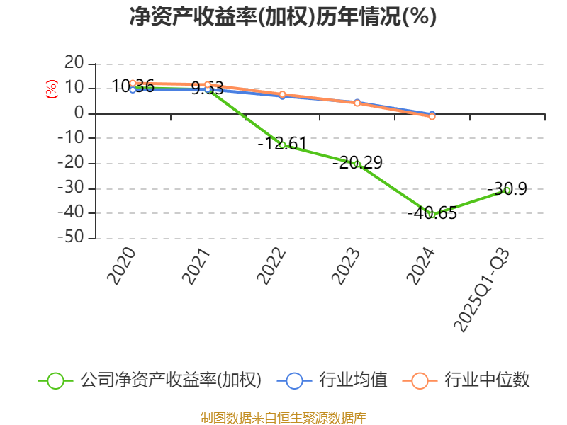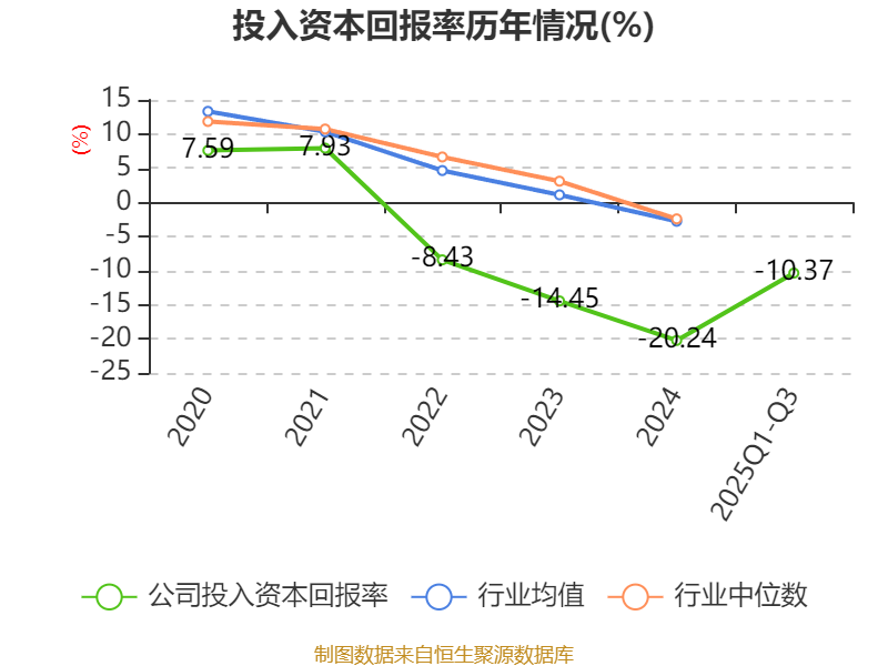 盈利能力方面, 2025年前三季度公司加权平均净资产收益率为-30.9%,同比下降28.8个百分点。公司2025年前三季度投入资本回报率为-10.37%,较上年同期下降10.1个百分点。