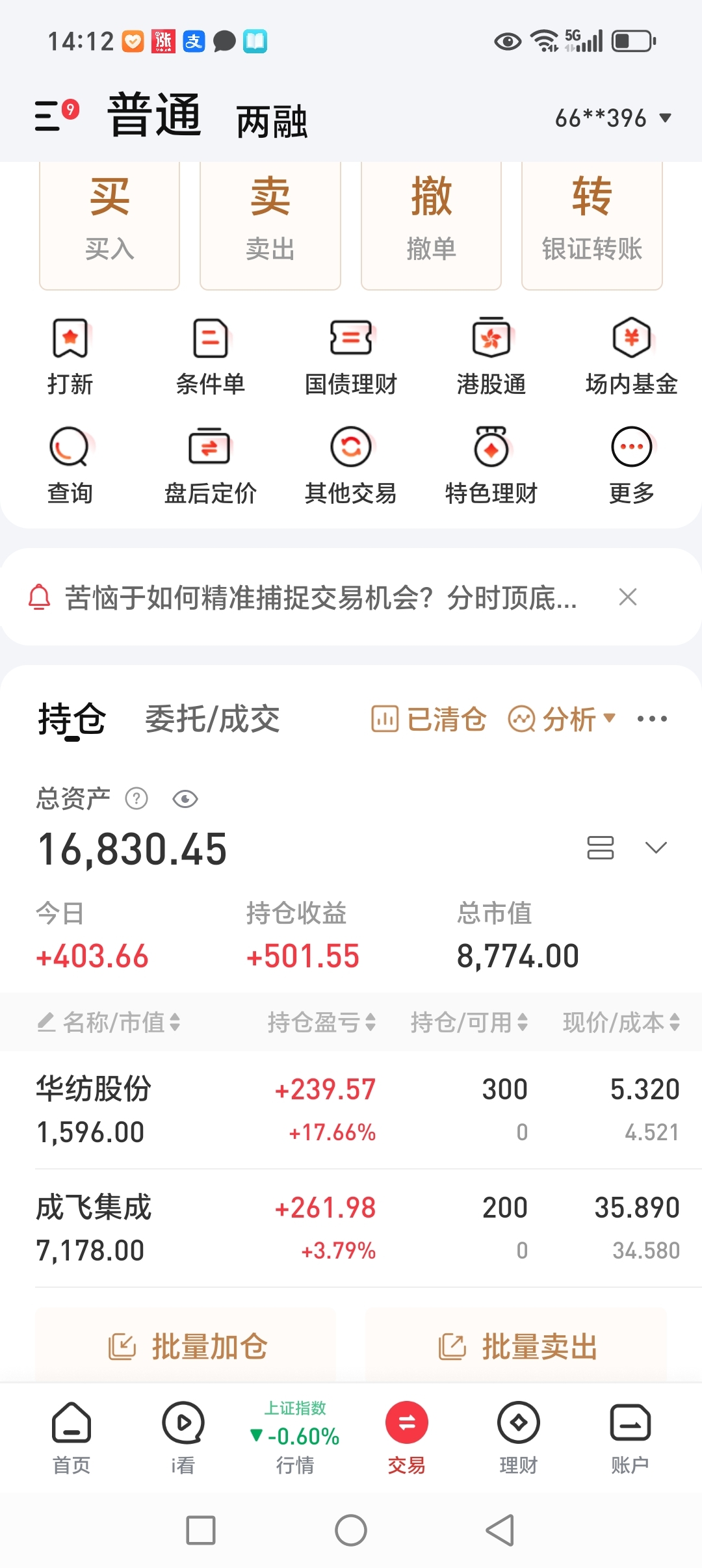 实盘第八天,虽然还没有收盘,今天不打算操作了,华纺股份的先手出清了,现在还没有涨