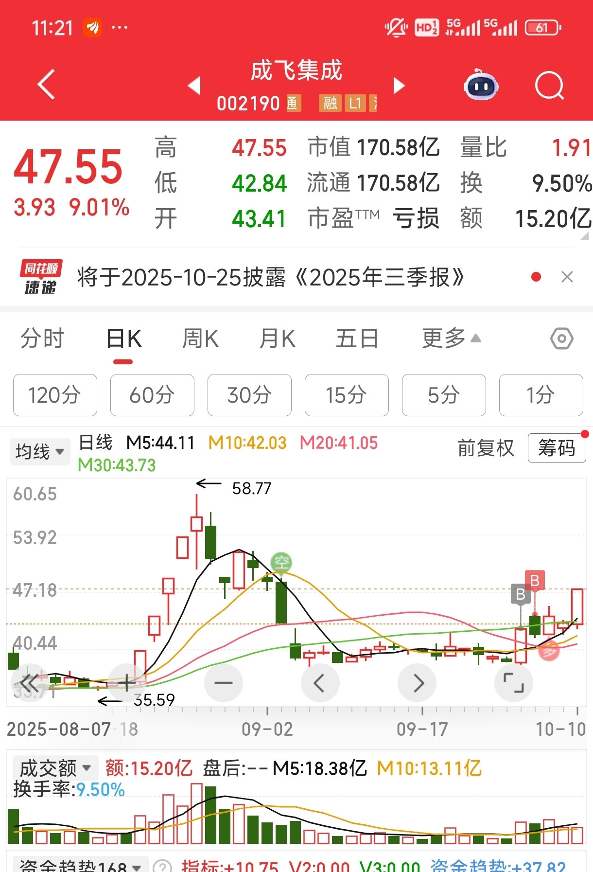 $成飞集成(SZ002190)$ 忍了几天