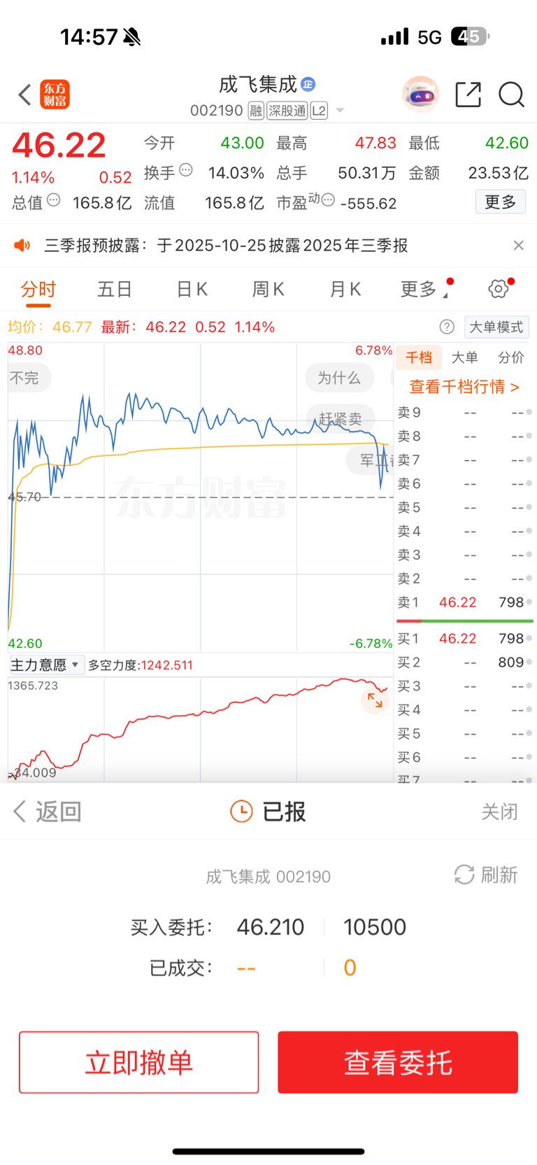$成飞集成(SZ002190)$ 再䃼!尾盘有人搞事,明天䃼涨。
