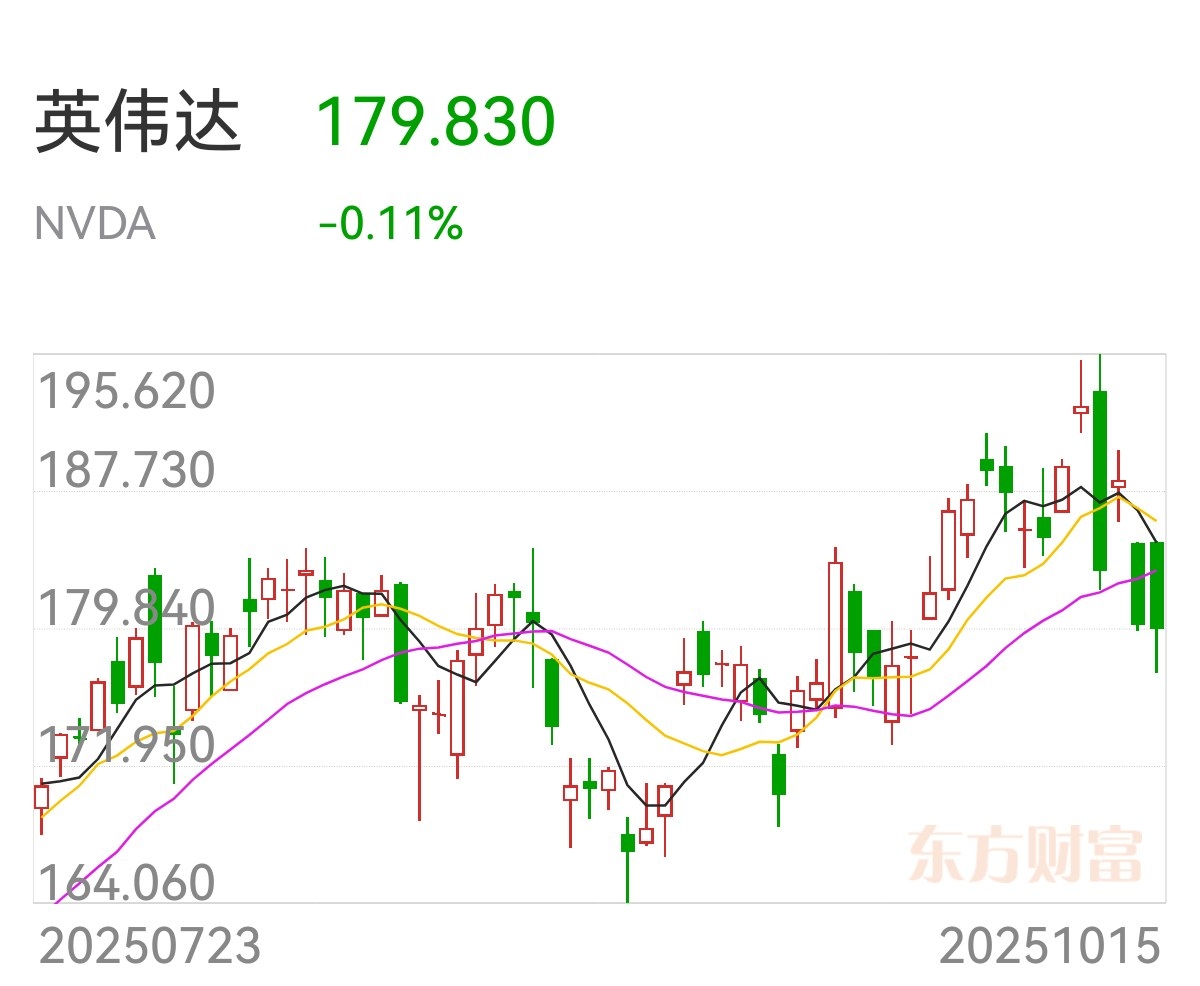 4.英伟达高开后涨2.67%,再走低跌0.11%,收报于179.8。