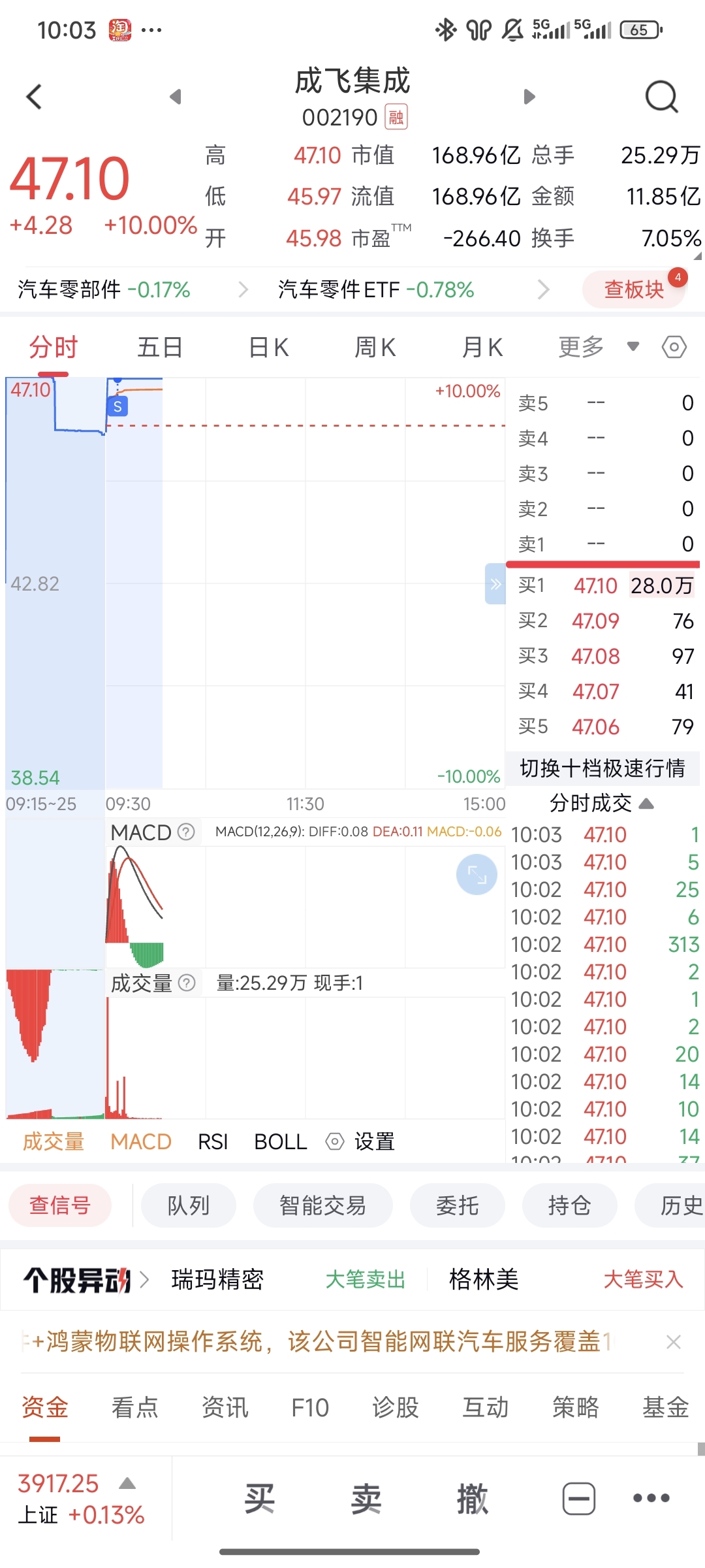 $成飞集成(SZ002190)$ 持股很久,今天被洗了,主力太脏了