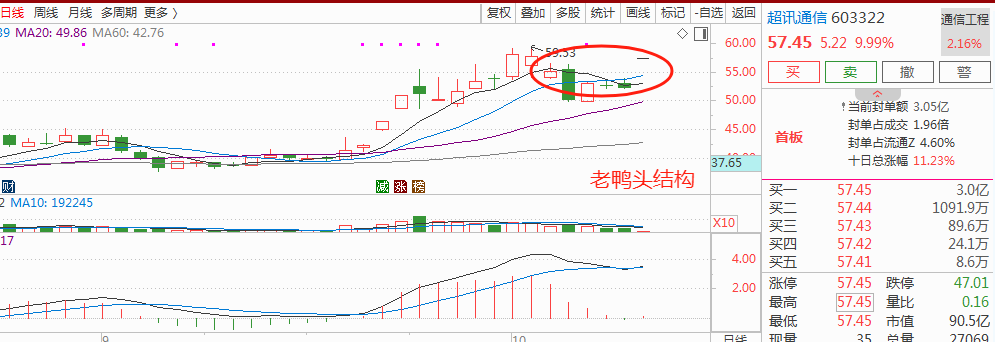 广生堂,主要是格局9月15日跟9月25日两个高点的压力,但连续震荡了三天迟迟不肯上去,周五阴线压顶但是昨天周一又反包了,股价重新回到5日线支撑之上,60分K依旧有老鸭头结构的趋势。