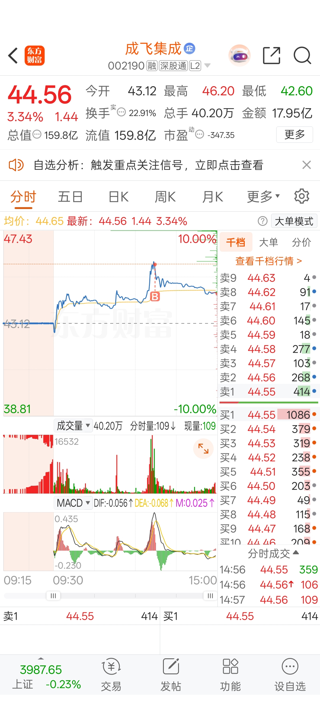 $成飞集成(SZ002190)$ 踏,干我3个点,操了,