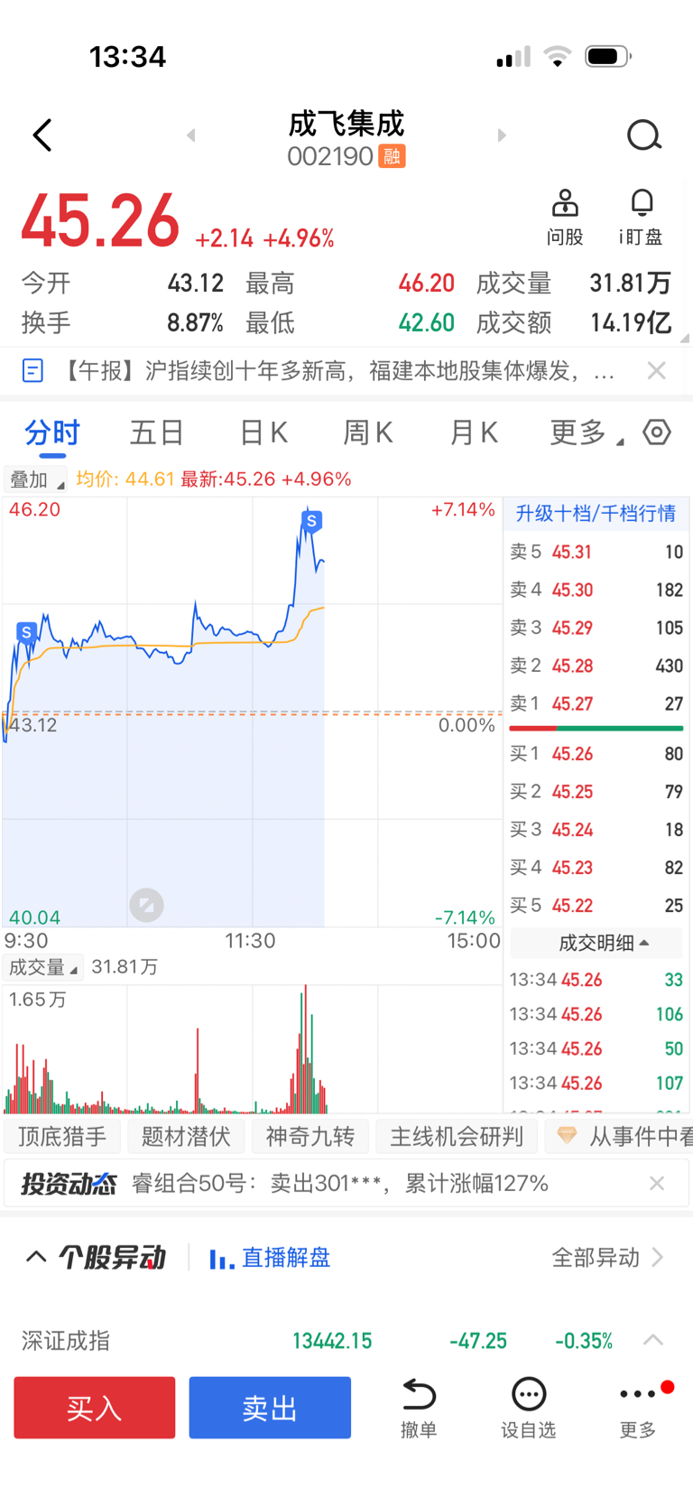$成飞集成(SZ002190)$ 一开始流入接近一个亿,收盘流出完了,高点一直在跑那就跟着跑,明天再观察一下