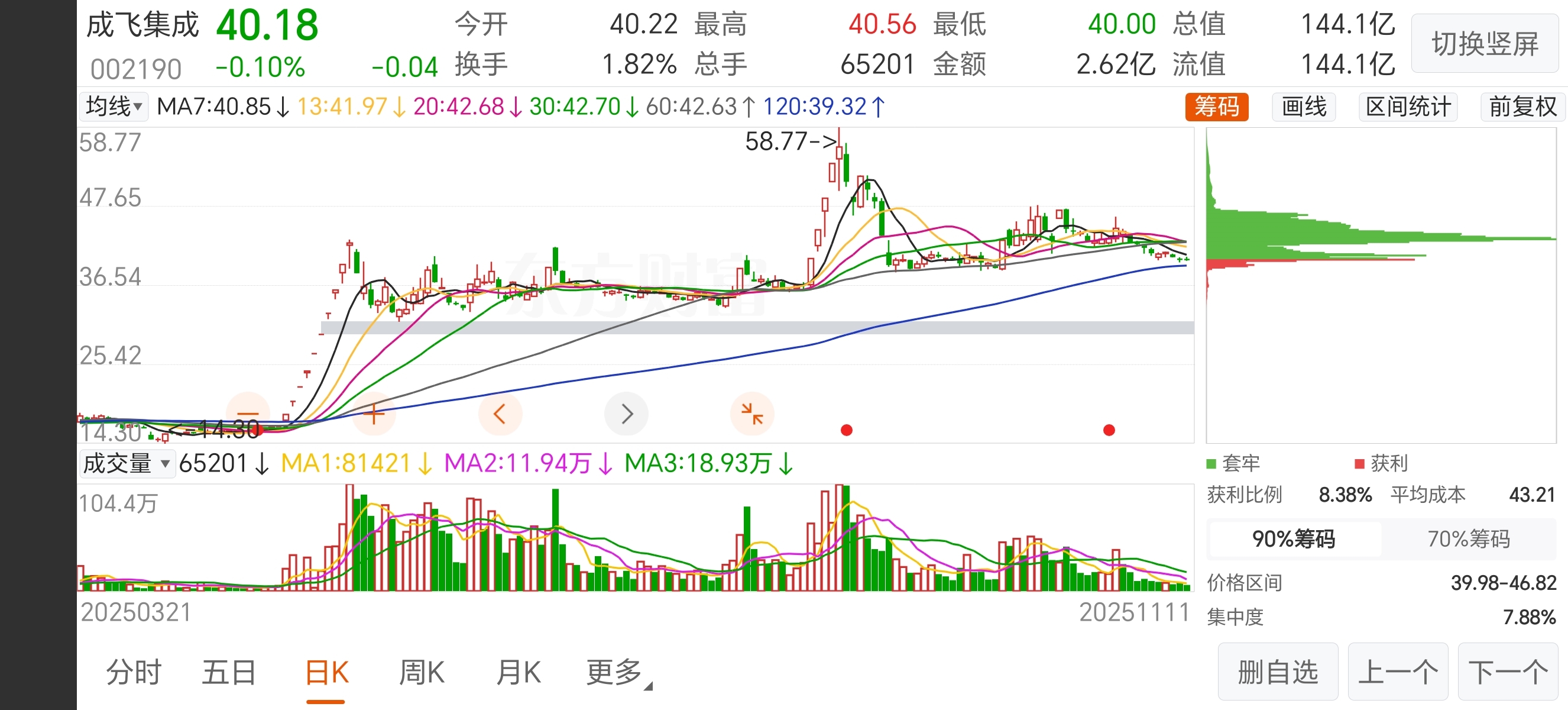 连续加仓成飞集成两天,走势看已经连续缩量两周,跌不下去!如果军工方向来一波,随时