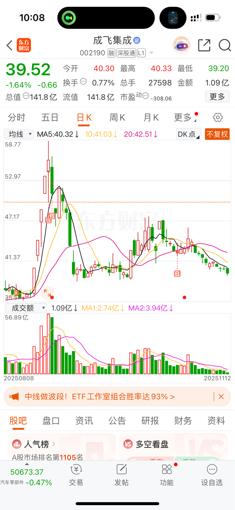 $成飞集成(SZ002190)$ 再也不补仓了。老实了