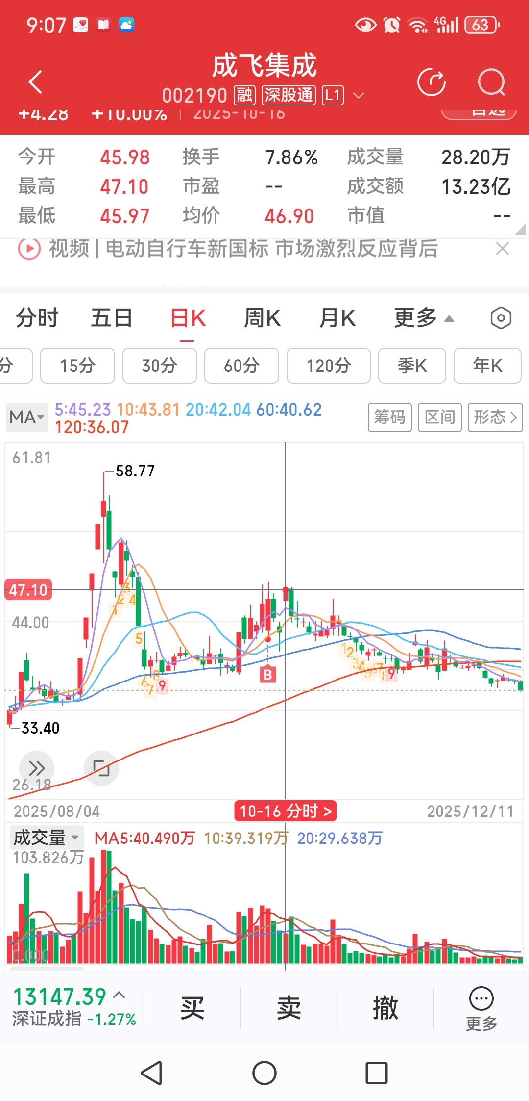 $成飞集成(SZ002190)$ 涨停没走成这死样了