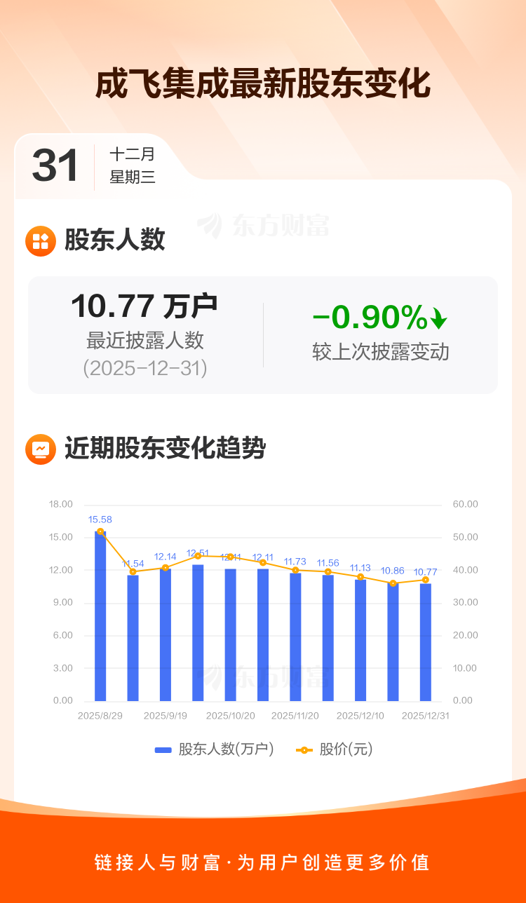 成飞集成:截至12月31日最新股东户数10.77万户,较上期减少0.90%