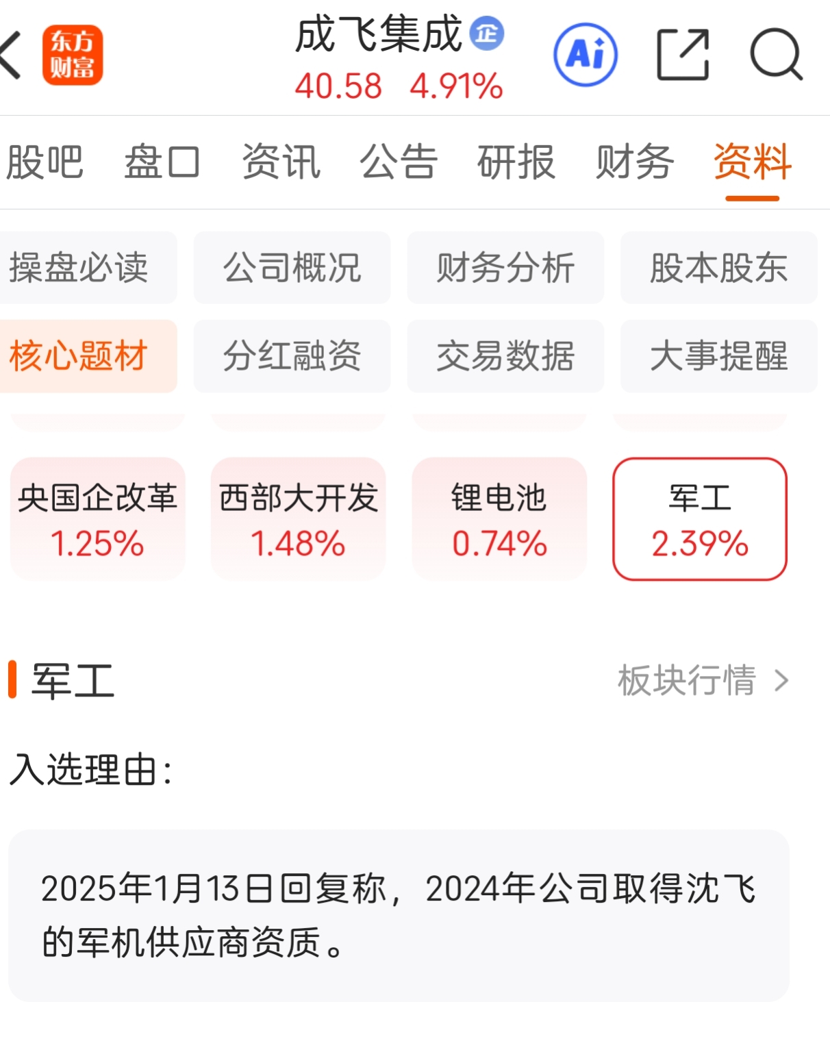 $成飞集成(SZ002190)$ 看看是不是军工股