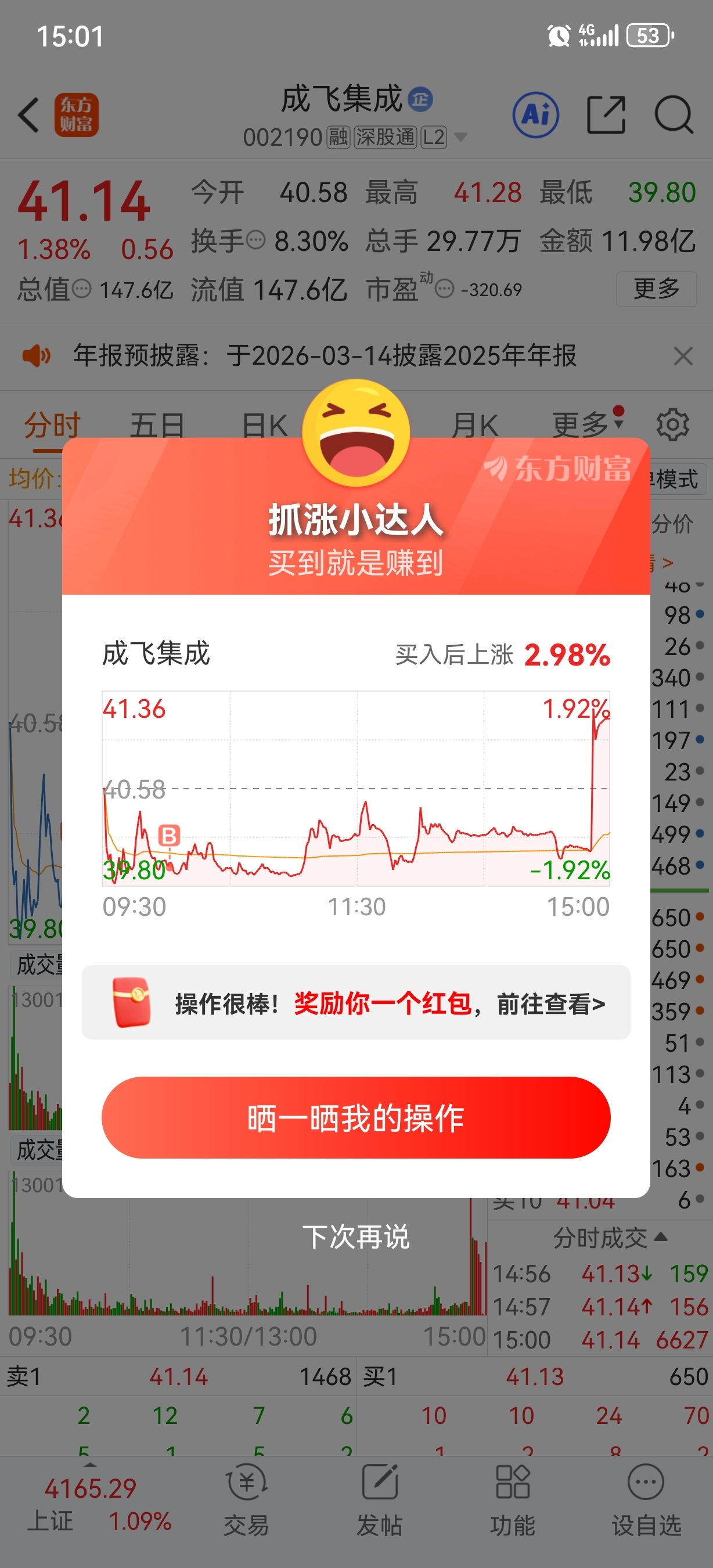 $成飞集成(SZ002190)$ 都在晒那我也晒
