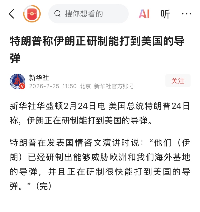 $成飞集成(SZ002190)$ 特朗普称伊朗正研制能打到美国的导弹