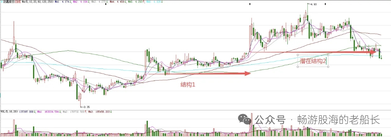股价小幅度冲高回落,日K线上影线比较长,释放了短线企稳的信号。加上近期股价在年线附近震荡,低点逐步降低,大概率是构筑阶段性底部形态。下周,股价大概率企稳回升。图中标注的结构1突破,意味着股价处在上涨趋势。潜在结构2是结构1突破后的回踩,是为了蓄势开启新的波段上涨