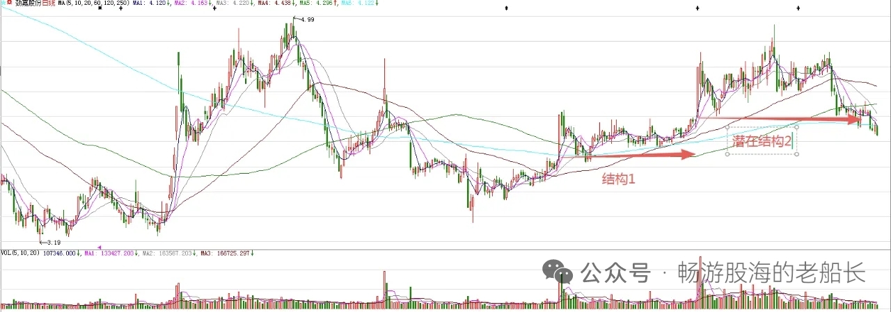 走出小阴线,短线来看,周三有惯性下探,但是既然到了年线位置,过去两个交易日也走出了企稳信号,所以,周三股价大概率探底回升。近期的震荡,不断走出小型低点,个人认为这是筑底信号,只差最后的确认了。图中标注的结构1突破,意味着股价处在上涨趋势。此后至今的调整,本质上是在构筑潜在的结构2.