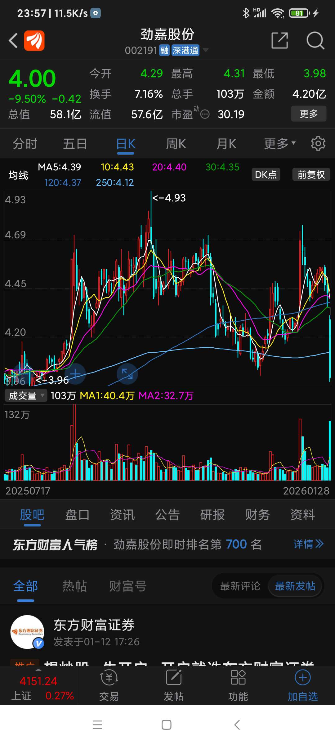 温馨提示: 1.根据《证券法》规定,禁止编造、传播虚假信息或者误导性信息,扰乱证券市场;2.用户在本社区发表的所有资料、言论等仅代表个人观点,与本网站立场无关,不对您构成任何投资建议。用户应基于自己的独立判断,自行决定证券投资并承担相应风险。《东方财富社区管理规定》