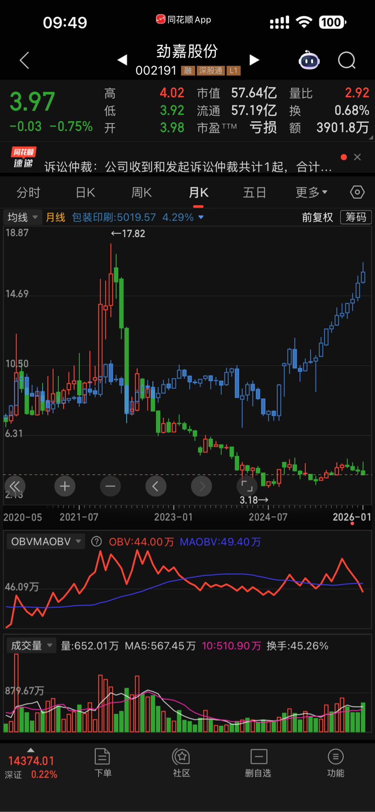 $劲嘉股份(SZ002191)$ 这个主力,生怕别人跟着他一起吃肉,你越这样,谁会卖,看看你跟板块差多少幅度