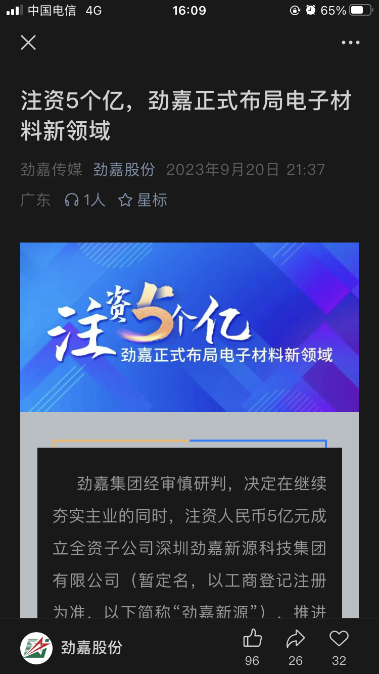 大手笔= 5亿注资电子材料=劲嘉新源2500万实缴资本(其中1500多万直接划入唯亮收购股权)0社保=零实缴劲嘉聚能13名社保连续三年送样史=以有为之举激发升级活力+以技术赋能推动创新发展+以实干之姿奔赴星辰大海!!星辰大海没有看见,顶多看见了一盆洗脚水。