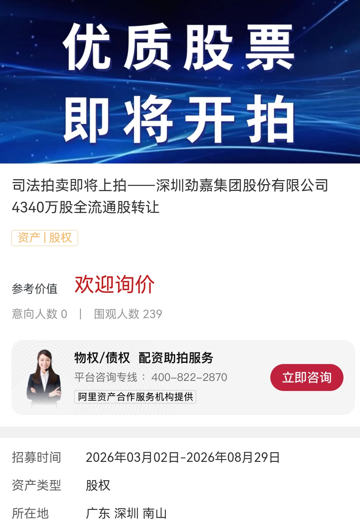 3月2日到8月26日劲嘉股份有两笔合计1.7亿多股份要被拍卖!