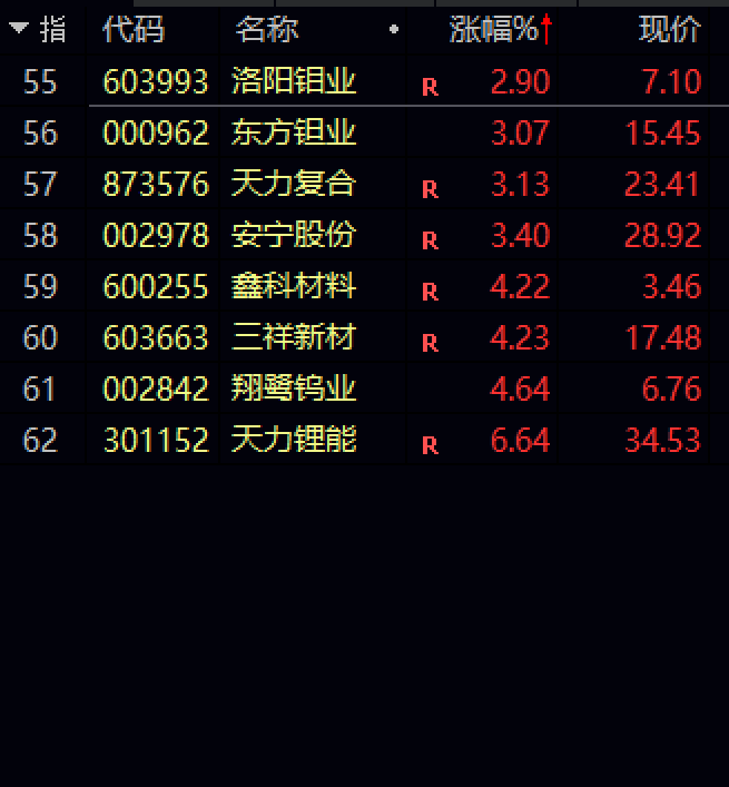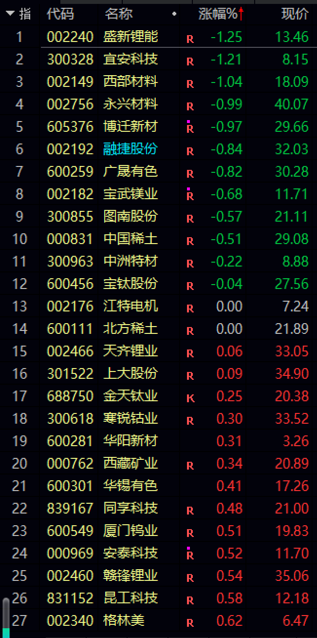 62家小金属上市公司,48家上涨,2家平盘,12家下跌,融捷股份列跌幅榜第6位。