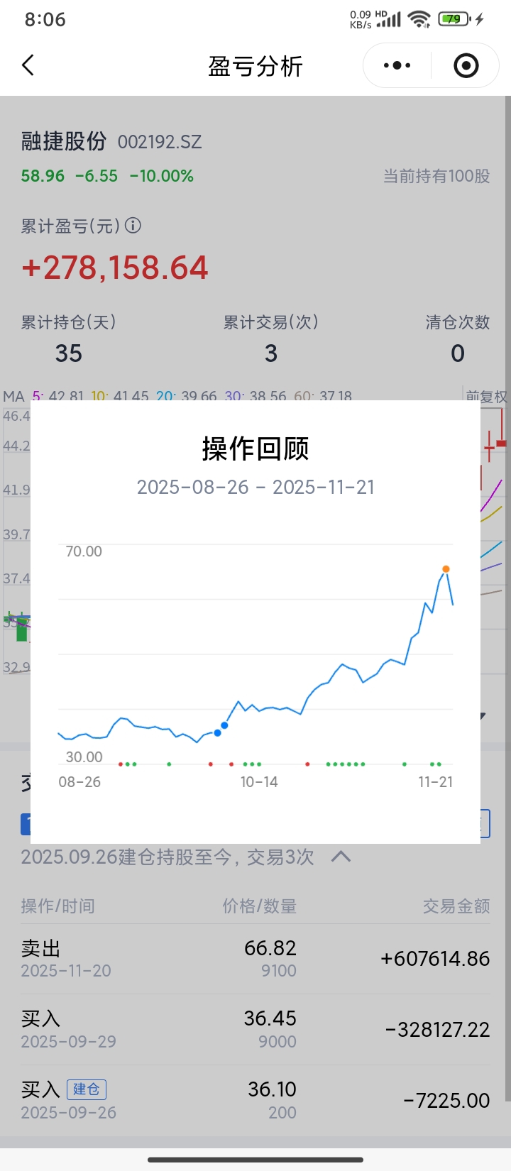$融捷股份(SZ002192)$ 上礼拜四中午跑的,留了一手观望,没想到礼拜五地板一字板