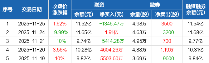 融捷股份:融资净偿还1346.47万元,融资余额11.52亿元(11-25)
