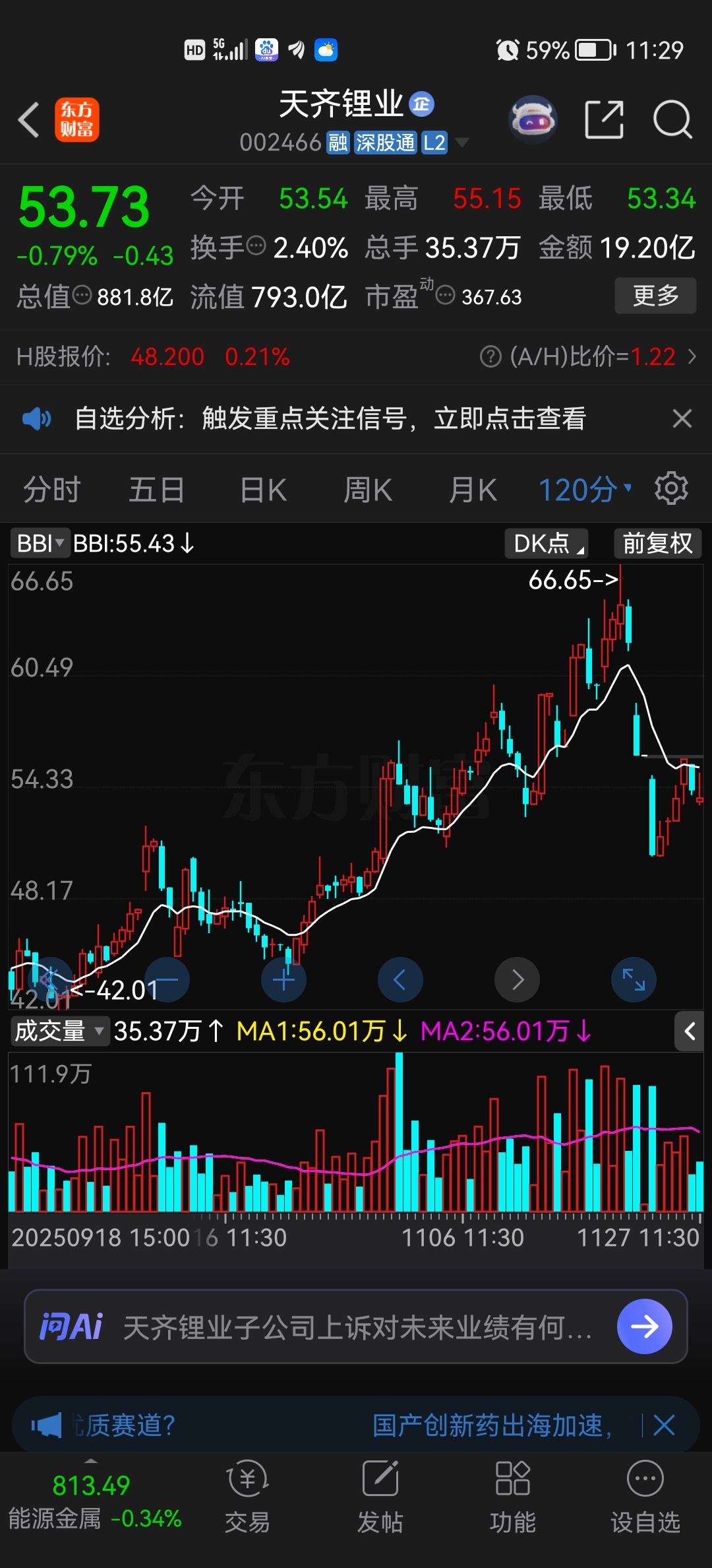 主要跟着关联龙头天齐里业走的。大风险没有。就是震荡走势。天齐今天缩量调整。融捷自