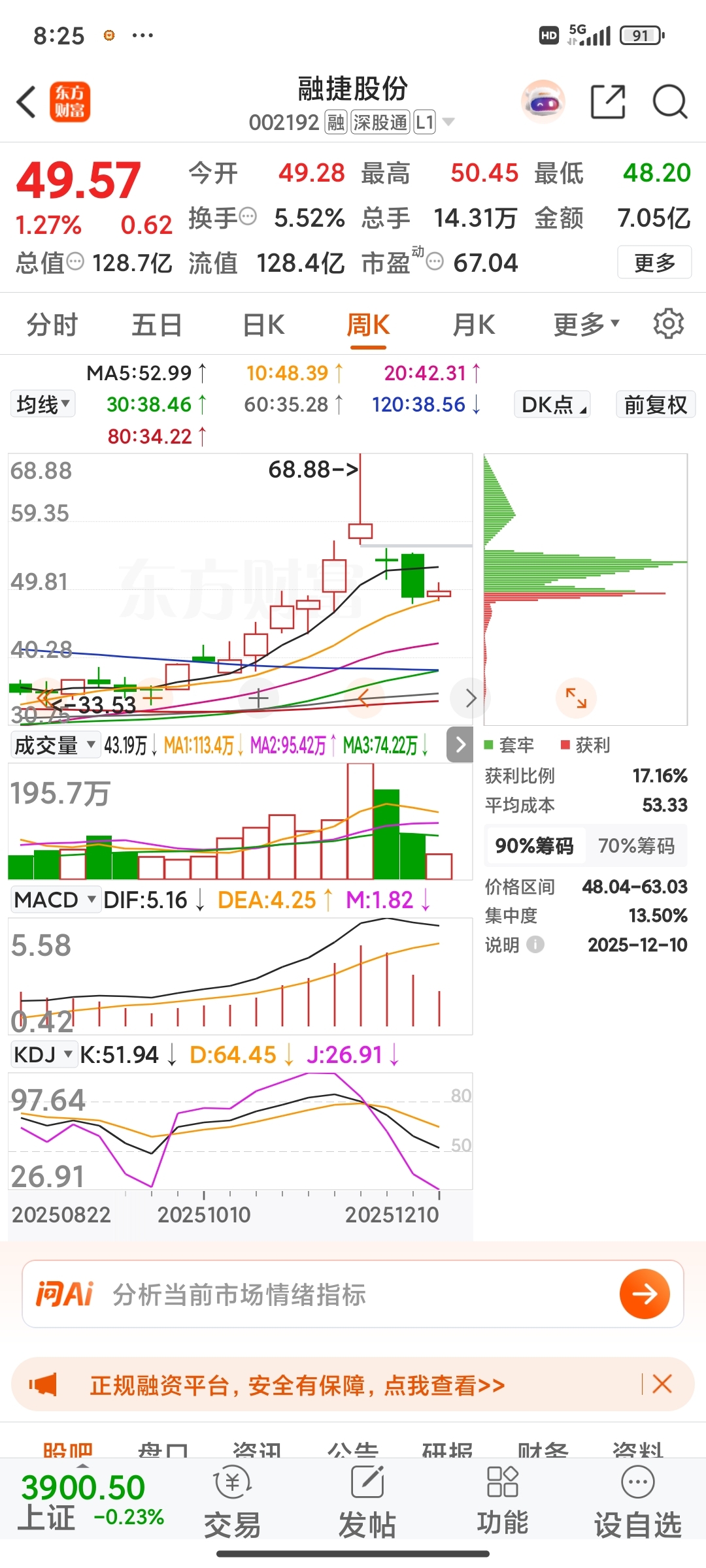 $融捷股份(SZ002192)$ 周线在10周短暂歇息,后续如果周线反弹但macd的dif继续向下,那就是卖点。看反弹高度在哪儿。能不能做上影线补了缺口。