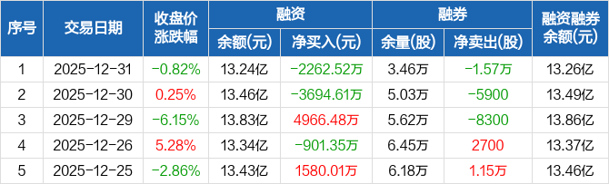 融捷股份:融资净偿还2262.52万元,融资余额13.24亿元(12-31)