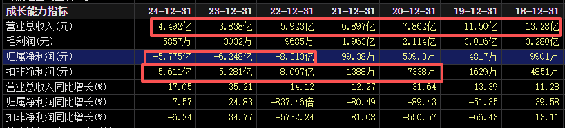 近年来,如意集团业绩较差,营业收入自2018年以来持续处于下滑趋势中,从13.28亿元跌到了4.49亿元。公司净利润则连续三年大额亏损,亏损额甚至超过了同期的营业收入,扣非后的净利润则连续五年亏损。2025年上半年,公司继续亏损约9500万元。