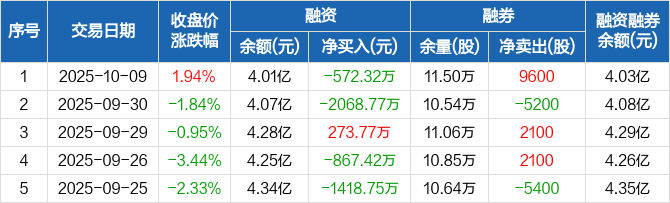 武汉凡谷:融资净偿还572.32万元,融资余额4.01亿元(10-09)
