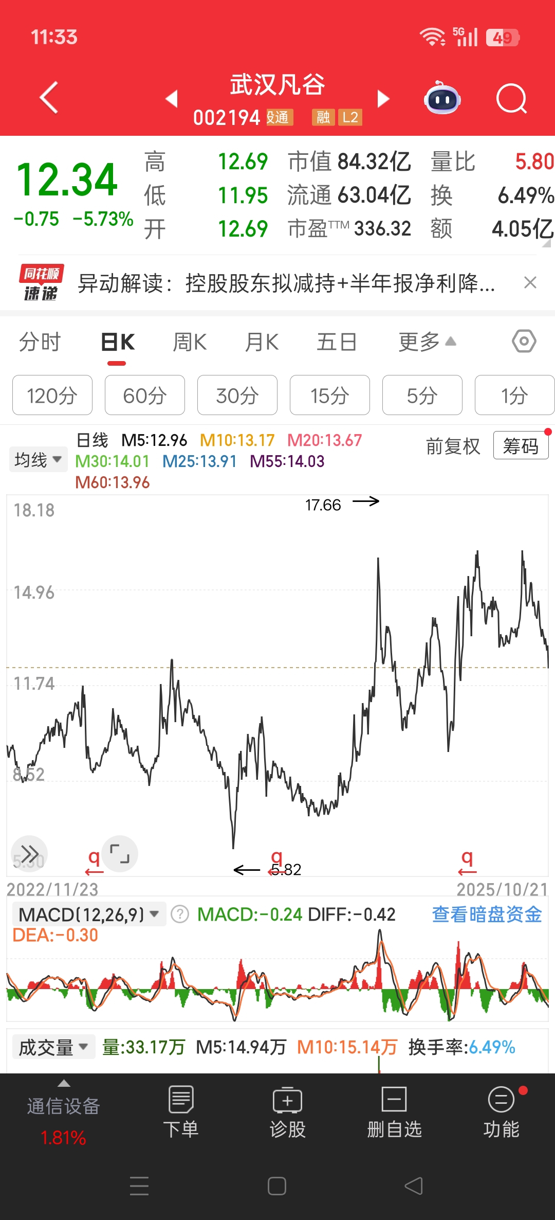 #炒股日记# 今年春玩过一次,赚点钱。17附近清仓的,然后一直没玩,前些天看跌了很多,又买了三次,没想到12附近他说减持!17他们不减持,现在减持,一定有猫腻,打死不卖!有本事你退市!