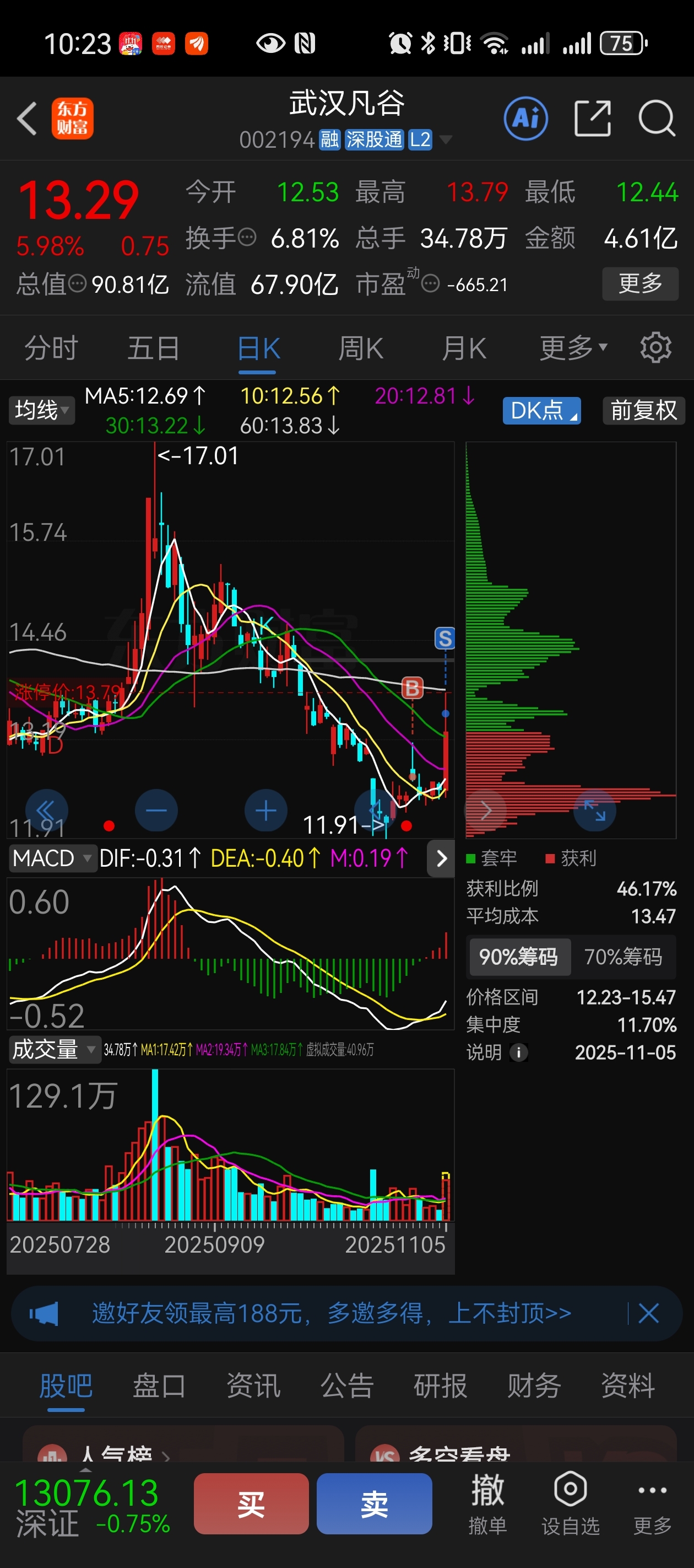 $武汉凡谷(SZ002194)$ 留1/3没卖,又吃亏了