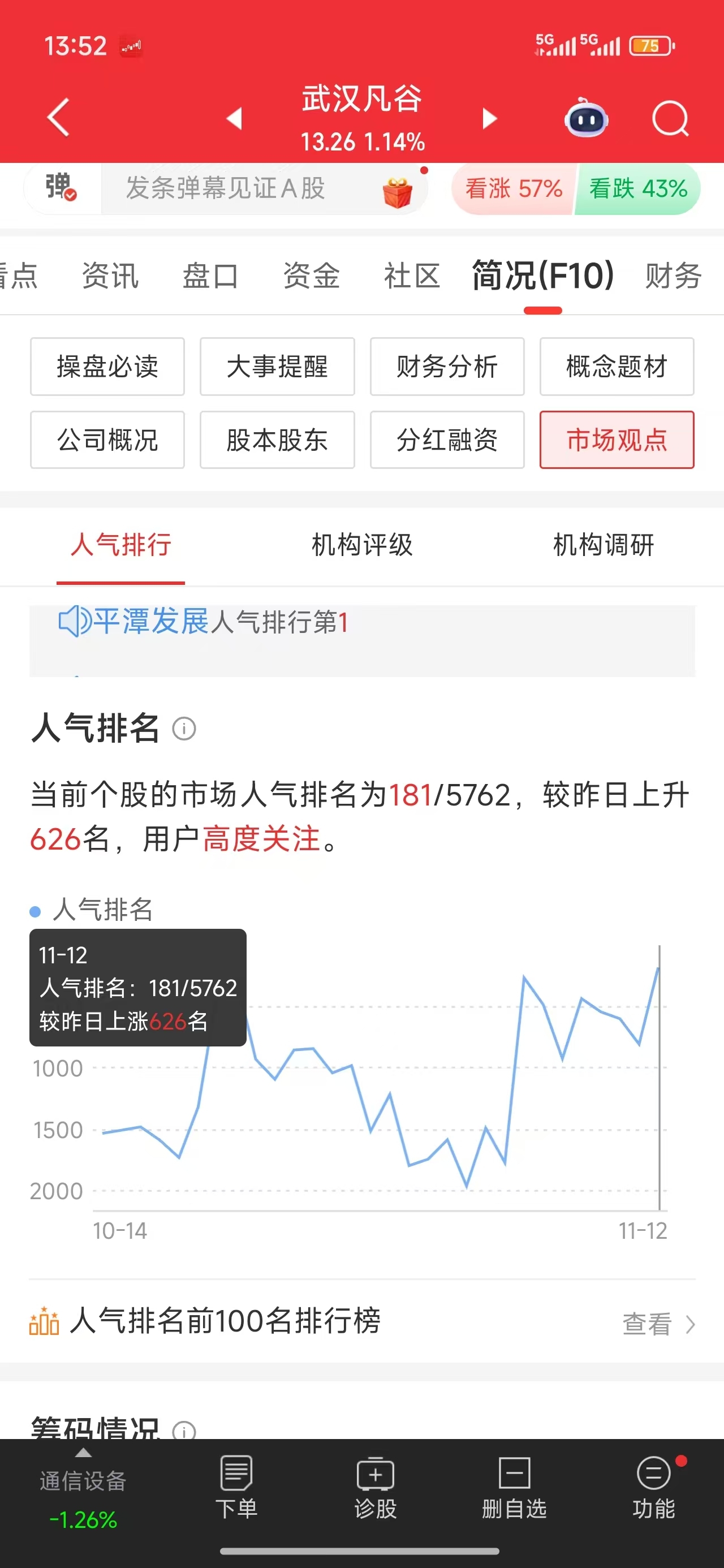 $武汉凡谷(SZ002194)$ 没有同花顺的排名高,同花顺当前排名181