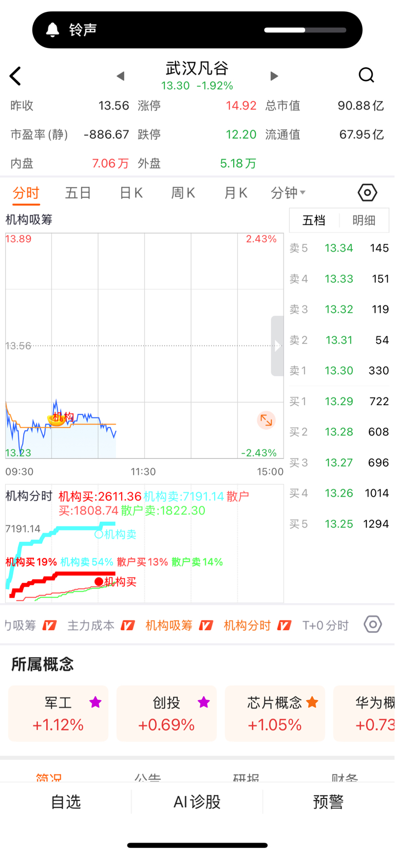 凡谷,今天,机构买19%,机构卖54%。主力出货,清仓走人!