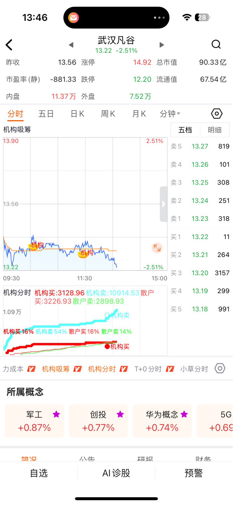 今天,武汉凡谷,机构买14%,机构卖55%!自己看后台!主力出货跑了,赶紧清仓。