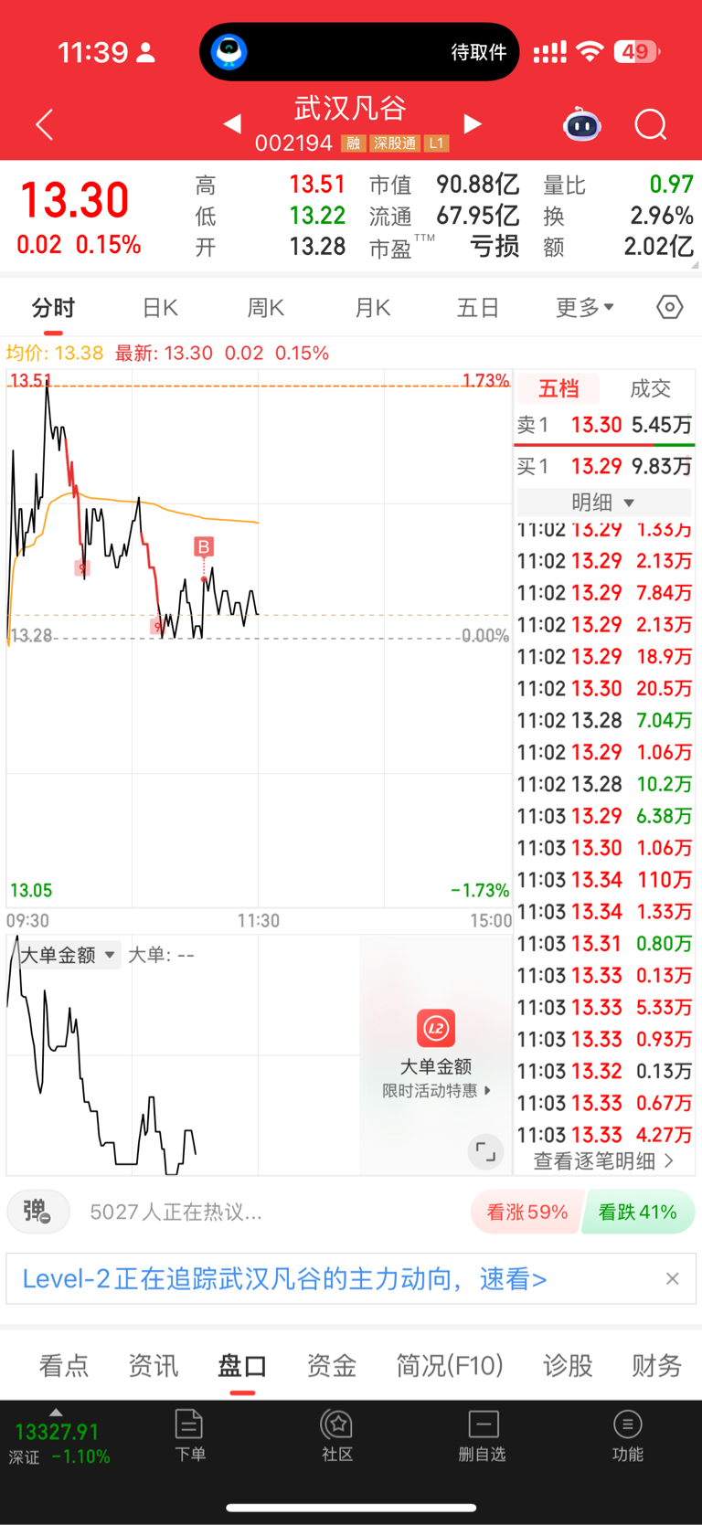 $武汉凡谷(SZ002194)$ 看下午收盘的