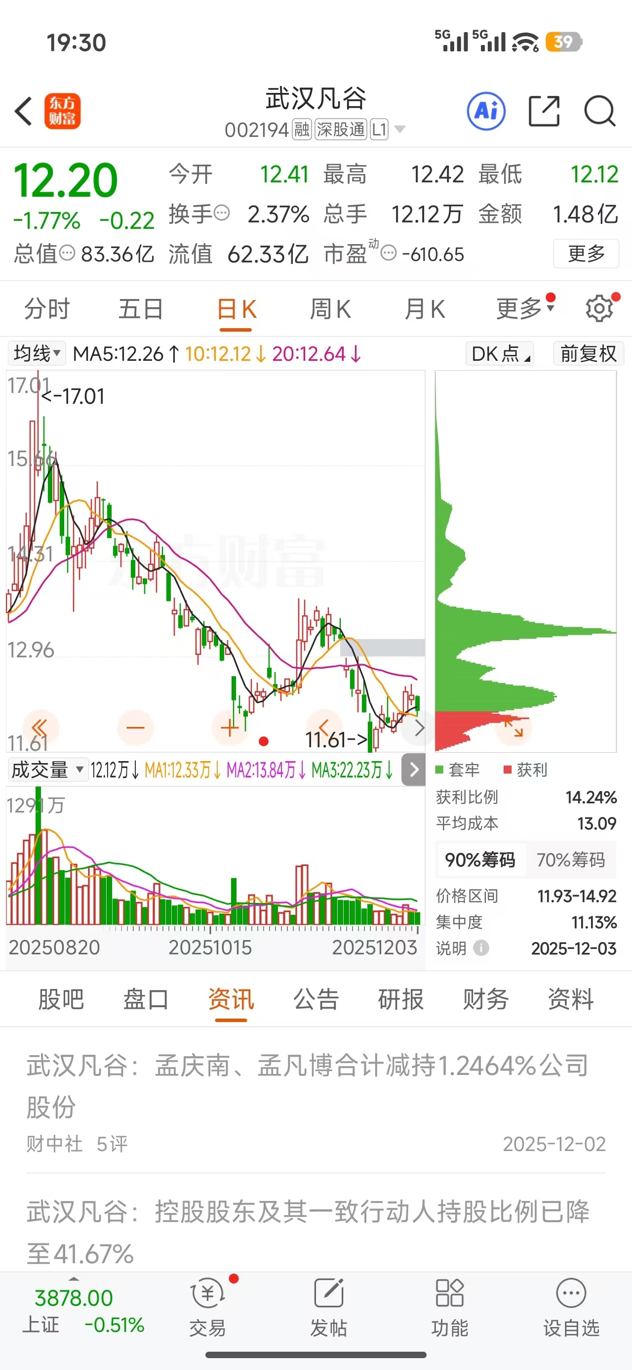 $武汉凡谷(SZ002194)$ 获利率14%,也就是说除了大股东减持是净赚不赔的,80%以上的人都是处于挨套的状态,大家觉得老庄们在这个价位会是赚的吗?